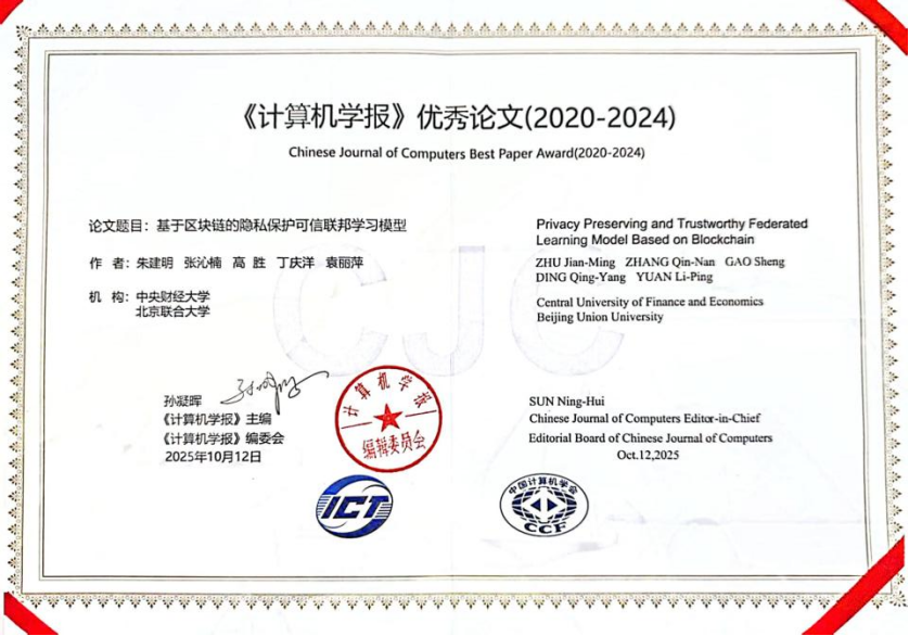 - 2025-10-25朱建明教授团队论文荣获《计算机学...